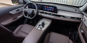 • Центральная консоль черного цвета, вставка из эко-кожи с прострочкой