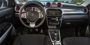 «Заряженный» кроссовер оборудован системами ABS и ESP, 7 подушками безопасности, датчиками дождя и света, светодиодной оптикой, радиоприемником, USB-разъемом, круиз-контролем и парковочными датчиками. В любой комплектации Suzuki Vitara S богатое оснащение обеспечено!