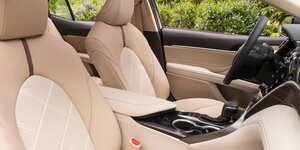 Значительно улучшились и технические характеристики Toyota Camry. Передняя подвеска типа «Мак-Ферсон» стала не только значительно легче, но и жестче на 15 процентов. Также японские инженеры решили улучшить показатели шумоизоляции за счет использования более толстой накладки задней полки. Точная цена на Тойота Камри будет известна после выбора подходящей комплектации, а также мотора и трансмиссии.